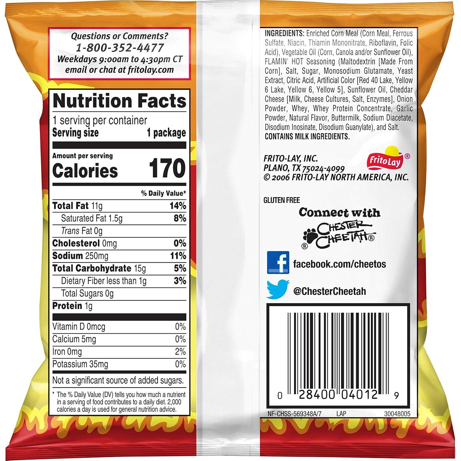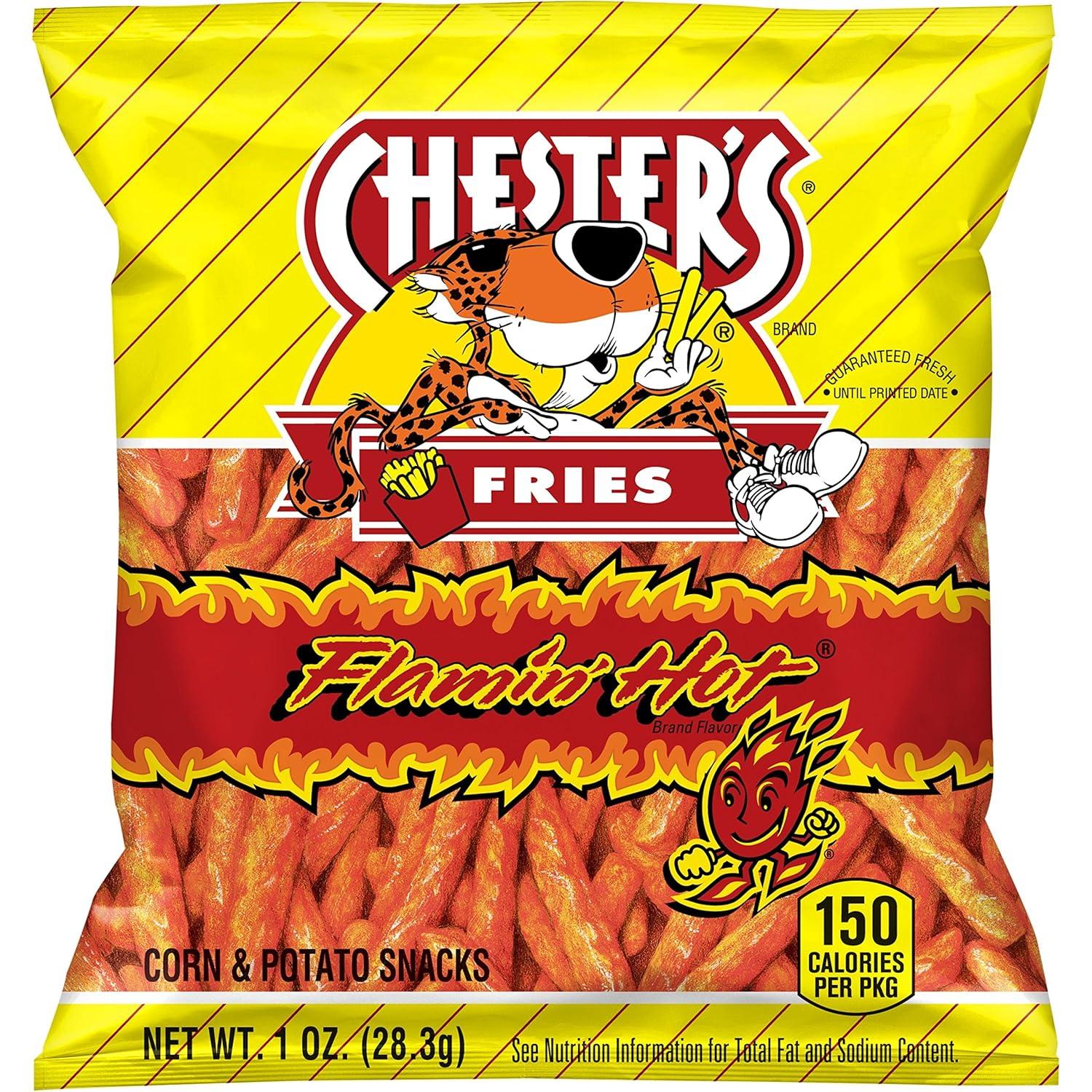 Try four of our most loved Flamin' Hot snacks in this Frito-Lay Variety Pack. Between our zesty and crisp Flamin' Hot Funyuns, bold and cheesy Chester's Flamin' Hot Fries, hot and tangy Cheetos Flamin' Hot Limon Crunchy, and our classic spicy Flamin' Hot Crunchy Cheetos & Cheetos Puffs, this variety pack offers a delicious option for every Flamin' Hot lover. Wherever the CHEETOS brand and CHESTER CHEETAH go, cheesy smiles are sure to follow.